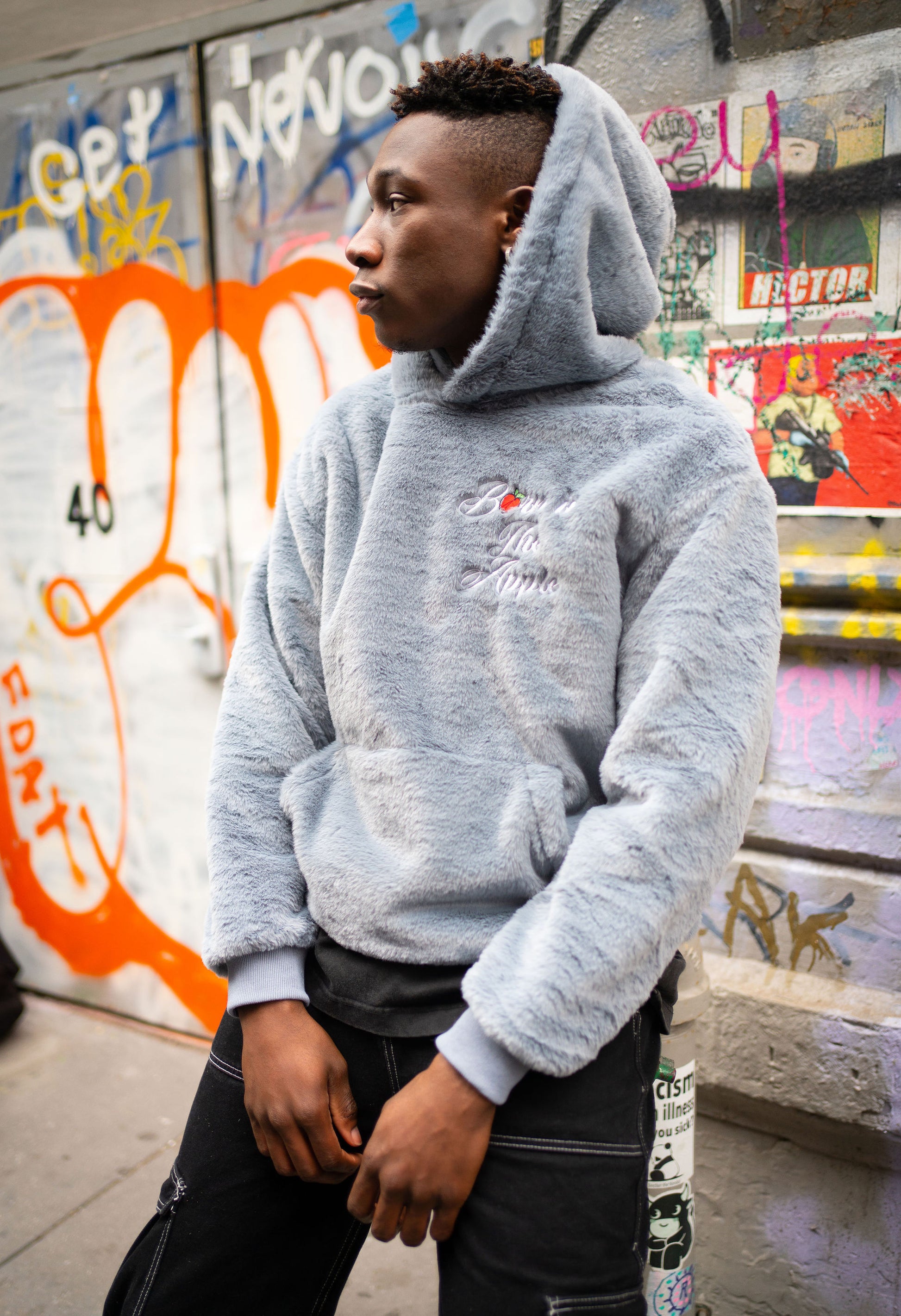 - Born In The Apple logo left chest